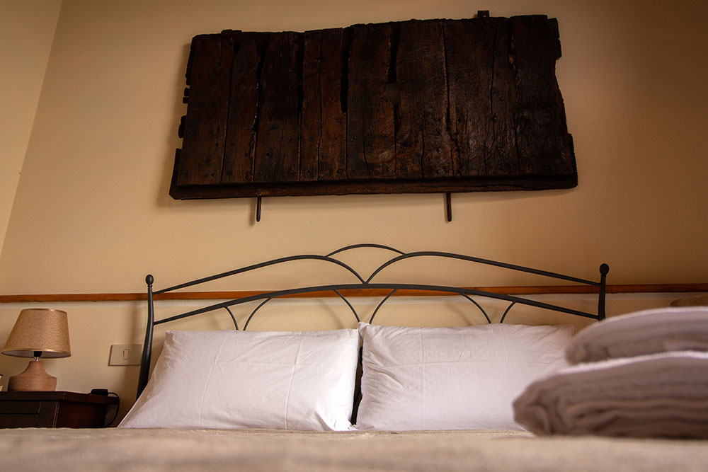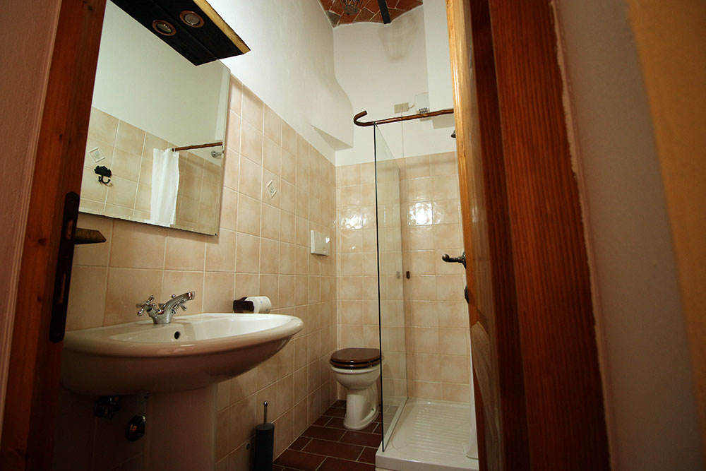 L’appartamento al piano terra con ingresso indipendente è composto da grande soggiorno- pranzo con camino, angolo cottura e divano letto matrimoniale, due camere da letto e bagno con doccia. I soffitti sono in travi a vista con formelle di cotto e i pavimenti, anch’essi in cotto, contornano pareti in muratura non intonacate, creando un ambiente suggestivo.