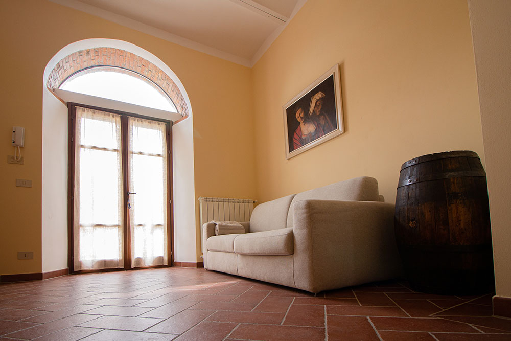 L’appartamento al piano terra con ingresso indipendente, composto da soggiorno- pranzo con angolo cottura, divano letto matrimoniale, camera da letto, bagno con doccia. Portico esterno illuminato ad uso esclusivo, completo di tavolo e sedie. Possibilità di utilizzare il barbecue.
