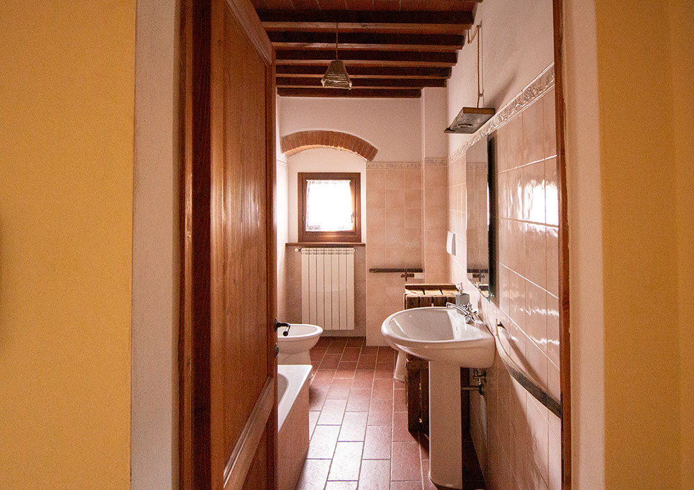 Gli spazi sono ampi e luminosi, ristrutturati finemente con soffitto in travi a vista e pavimenti in cotto.